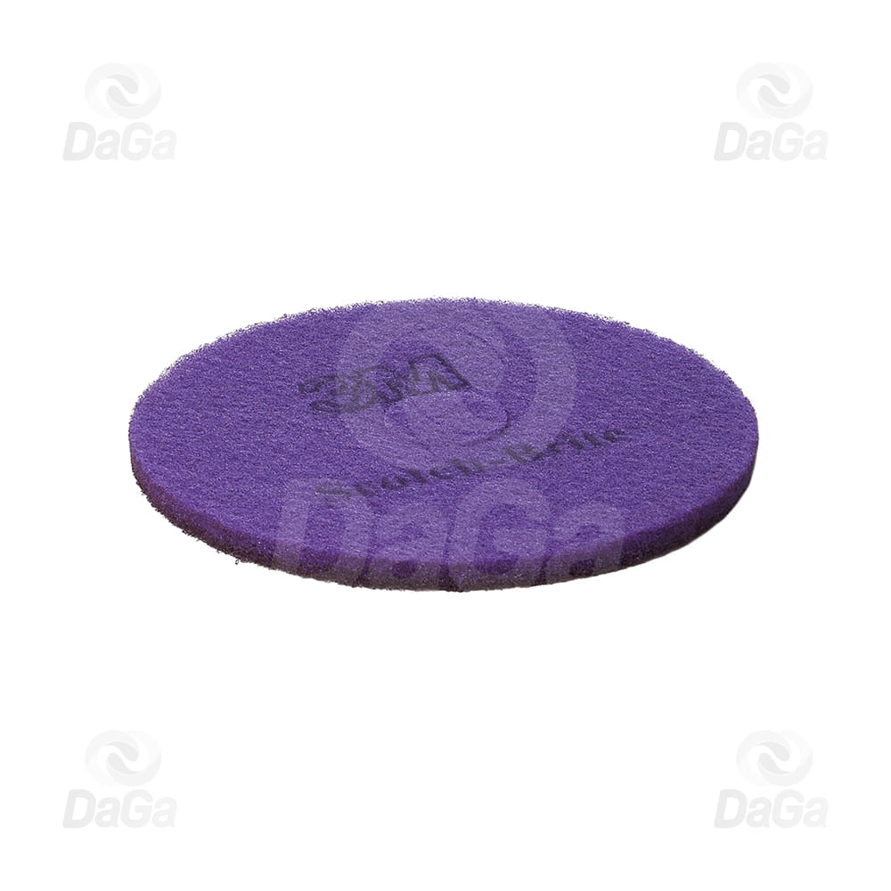 Średnica całkowita 432 mm, grubość pada 25,4 mm, kolor fioletowy 3M™ Scotch-Brite™ pad diamentowy do czyszczenia i polerowania, zapewniający rewelacyjny połysk na marmurze, lastryko, winylu, łupkowych i polerowanych podłogach betonowych. Stosowany jako 2-gi, końcowy etap uzyskiwania połysku posadzki. W przypadku podłóg o słabym stanie wizualnym należy początkowo użyć 3M™Scotch-Brite™ Ciemnobrunatnego pada diamentowego, w celu optymalego przygotowania posadzki do polerowania.