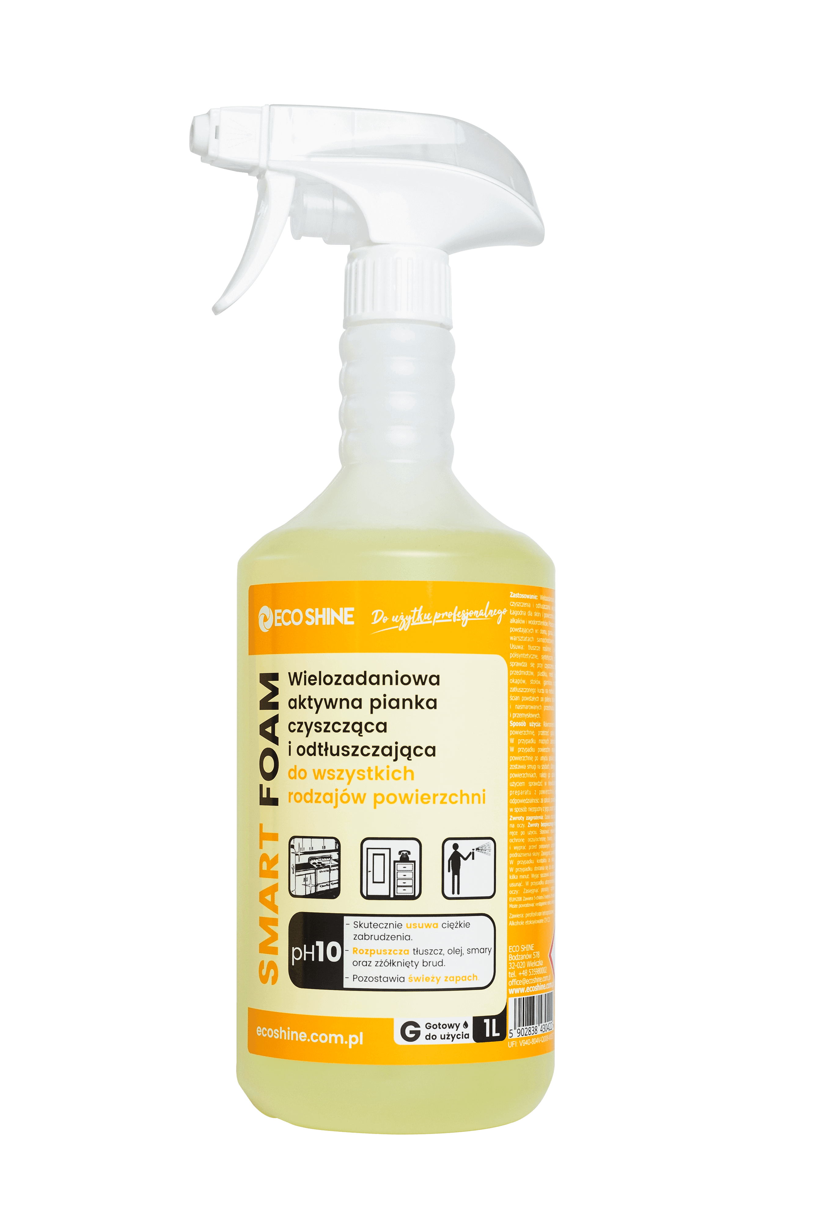 Uniwersalna nie żrąca dla skóry i powierzchni pianka do mycia wszystkich rodzajów powierzchni i przedmiotów.